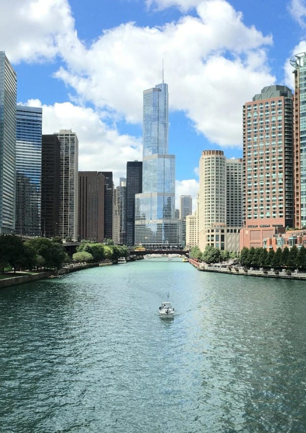 The Riverwalk offers stunning views of Chicago’s famous skyline, including landmarks like the Willis Tower and the Tribune Tower.